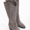 GRİ SÜET NAKIŞLI DESENLİ KOVBOY ÇİZME KADIN