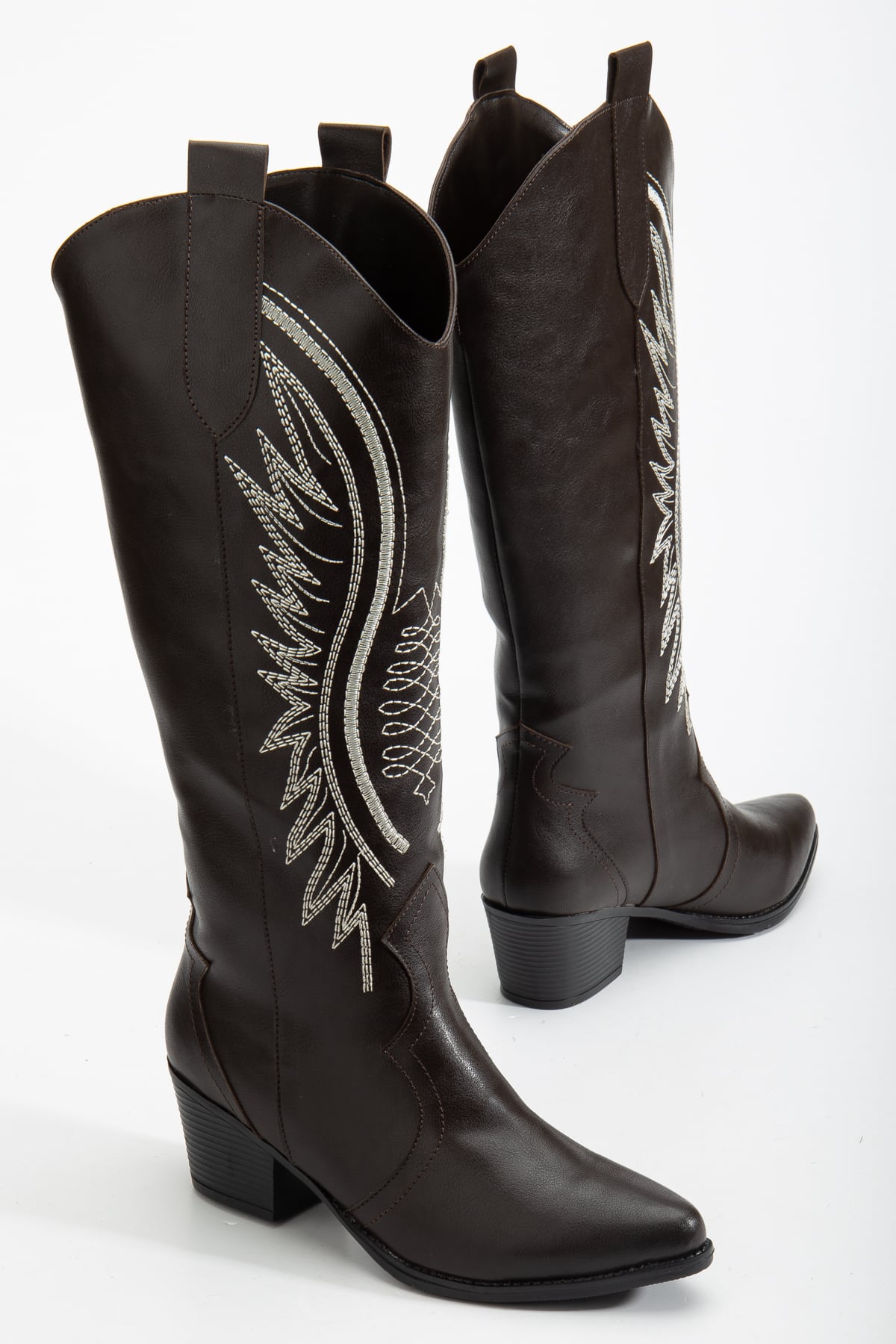 MS SUGAR SHOES Kadın Beyaz Nakışlı Western Kovboy Cowgirl Bot Çizme
