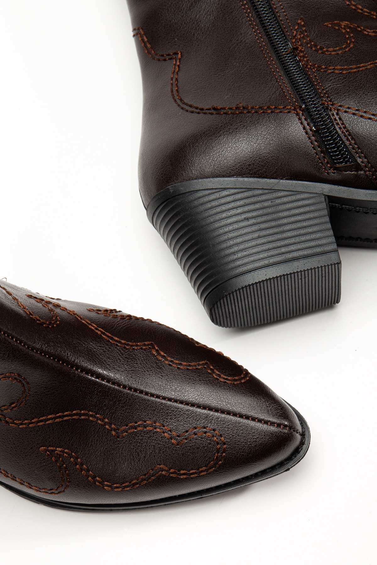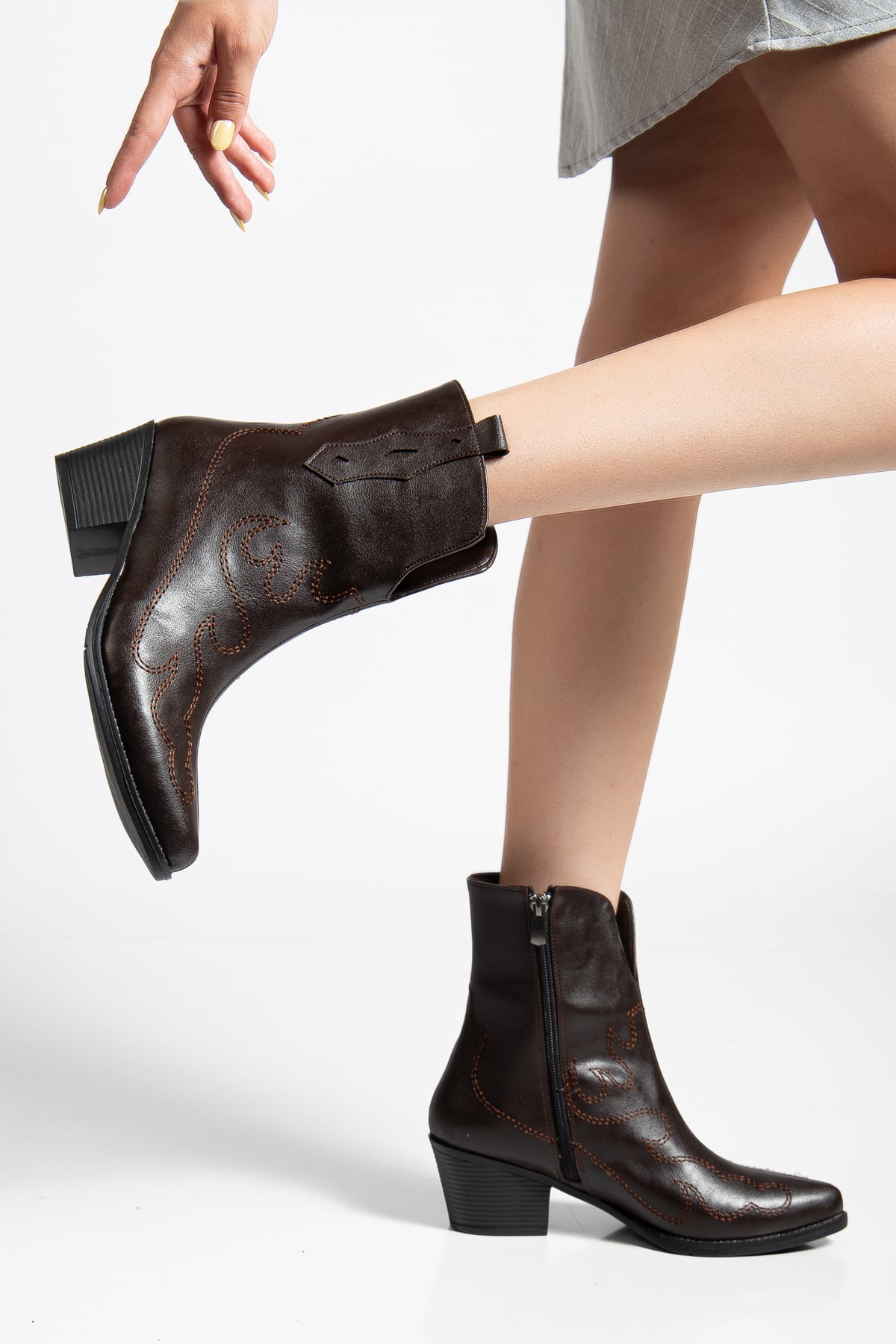 Western tarzını modern çizgilerle buluşturan Ms Sugar Western Kovboy Kadın Suni Deri Nakışlı Kısa Bot, özgüvenli ve zarif kadınlar için tasarlandı.
